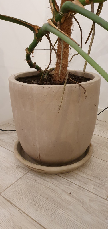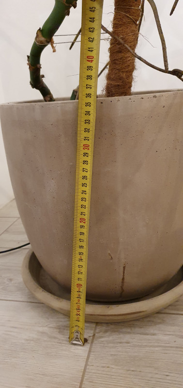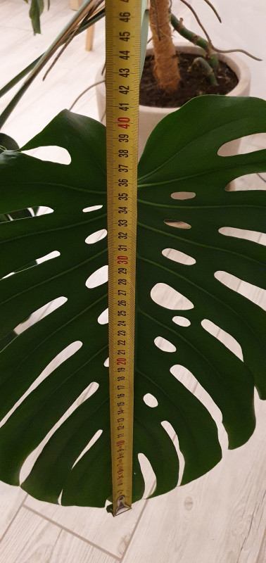 Sprzedam dużą monsterę razem z donicą i podstawką. Wysokość rozliny mierzona wraz z donicą i podstawką ok 118 cm, średnica donicy 35 cm.