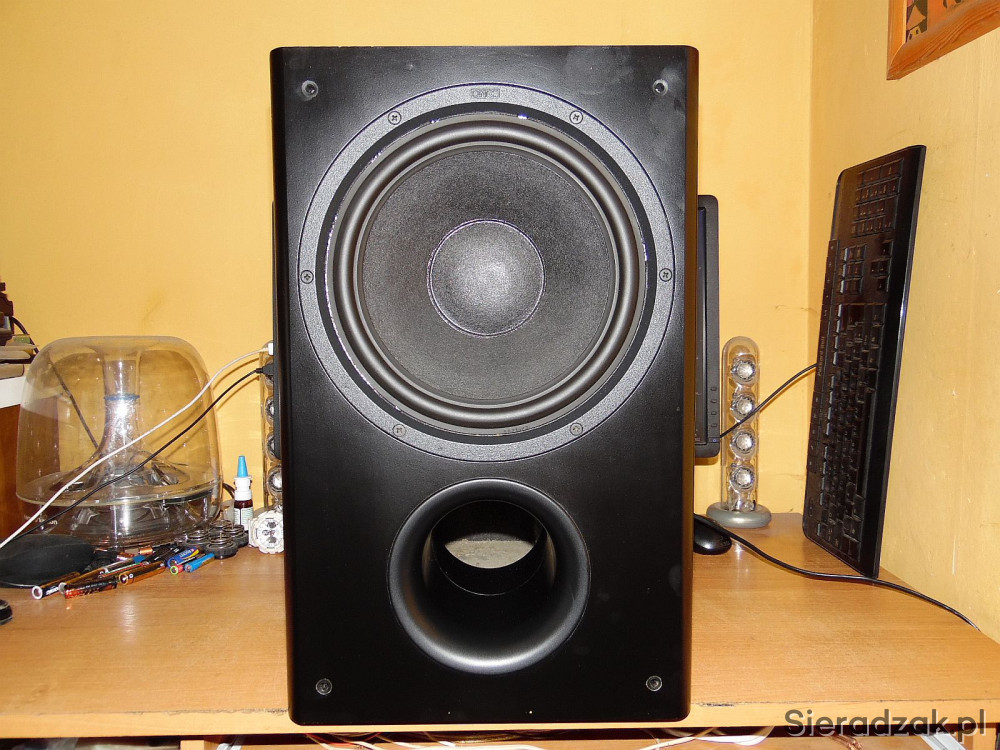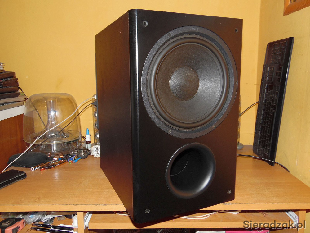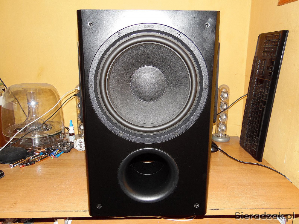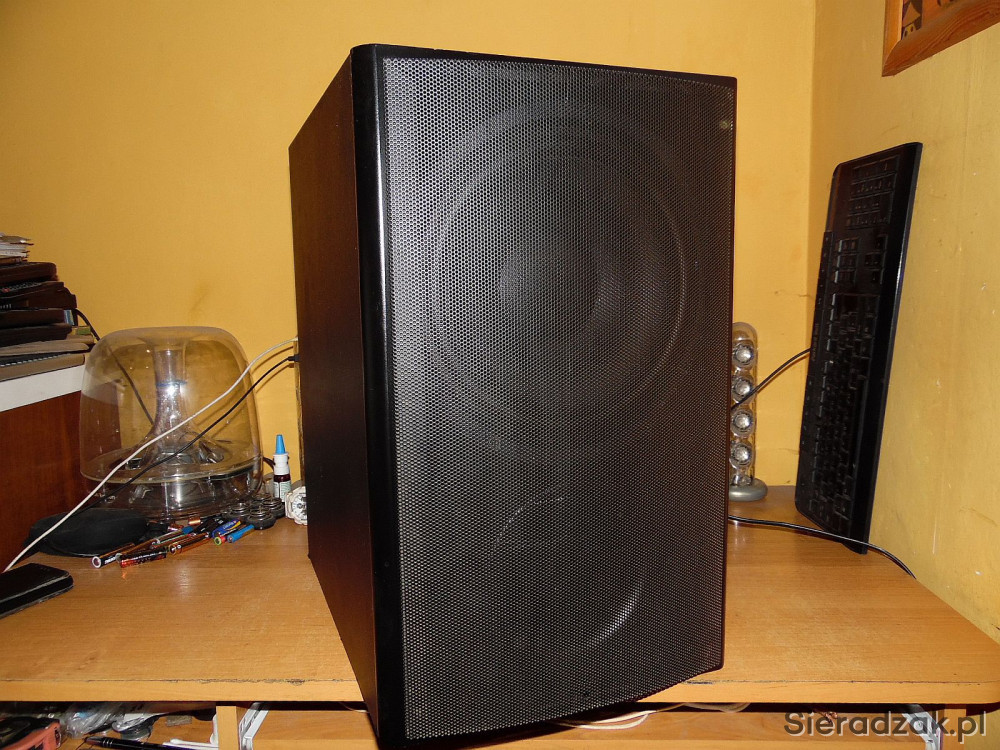 Subwoofer sprawny w stanie jak na foto. Bardzo potężny bas idealnie gra w stereo jak i w kinie. Polecam.