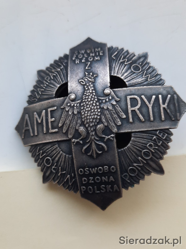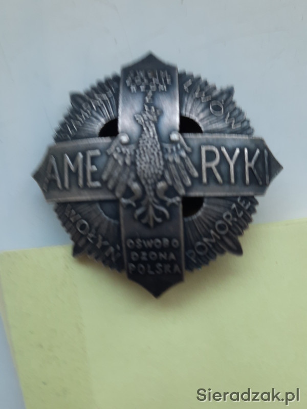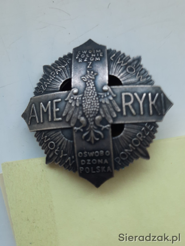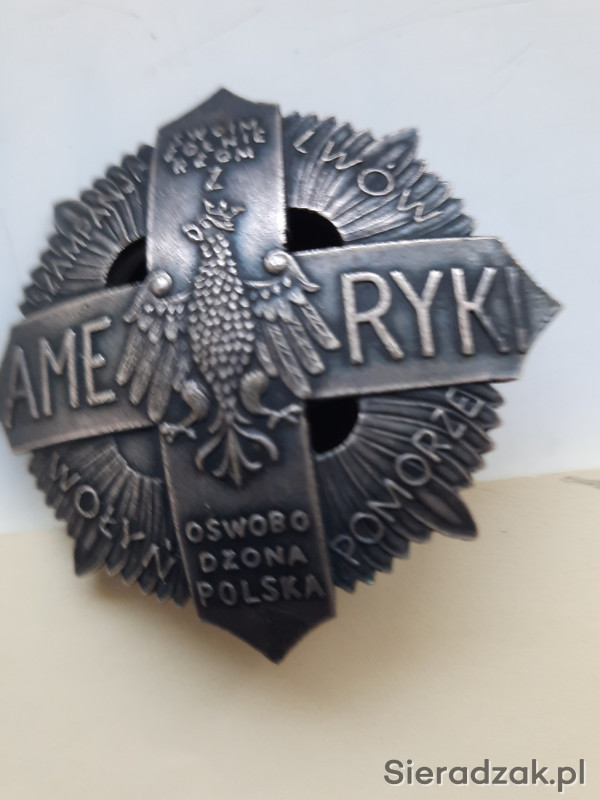 Krzyż - żołnierzom polskim z Ameryki - oswobodzona Polska . Piękny orzeł jagielloński? Stara, profesjonalna kopia grawerska. Ustanowiony przez J. Piłsudzkiego, po wojnie polsko - bolszewickiej w 1920r, dla ochotników z Kanady i USA. Nadawany do 1927r.