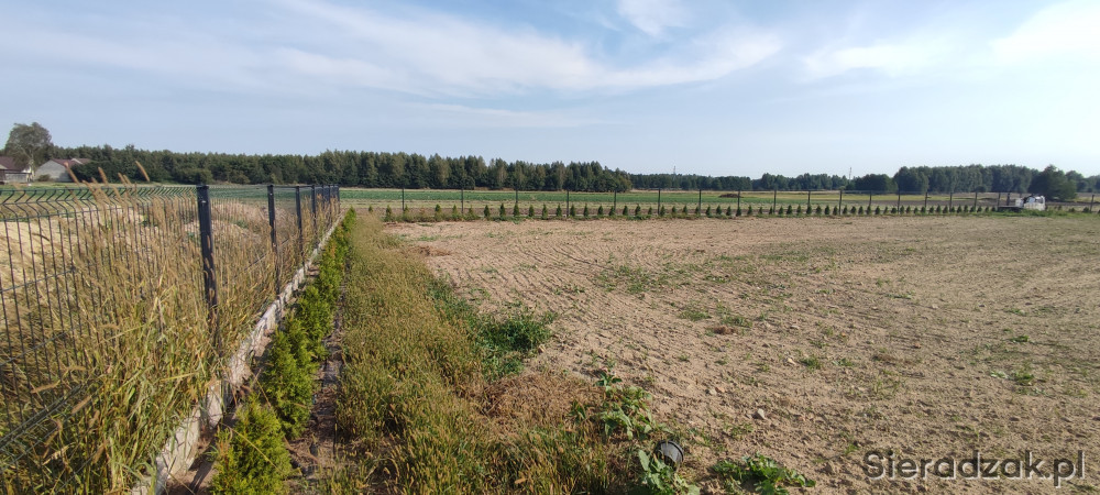 Wiosną 2022 wzdłuż ogrodzenia panelowego z trzech stron działki zostały posadzone tuje Szmaragd (140 sztuk).
