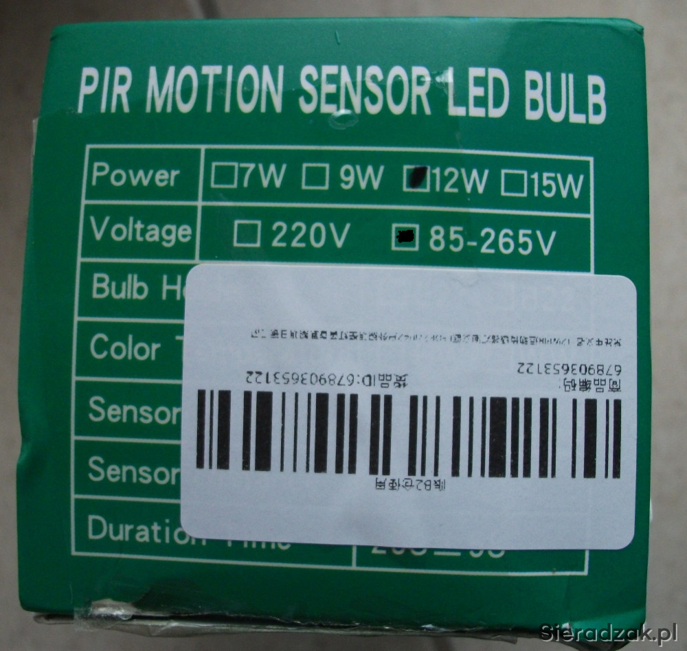 Czujniki: czujnik światła, czujnik PIR