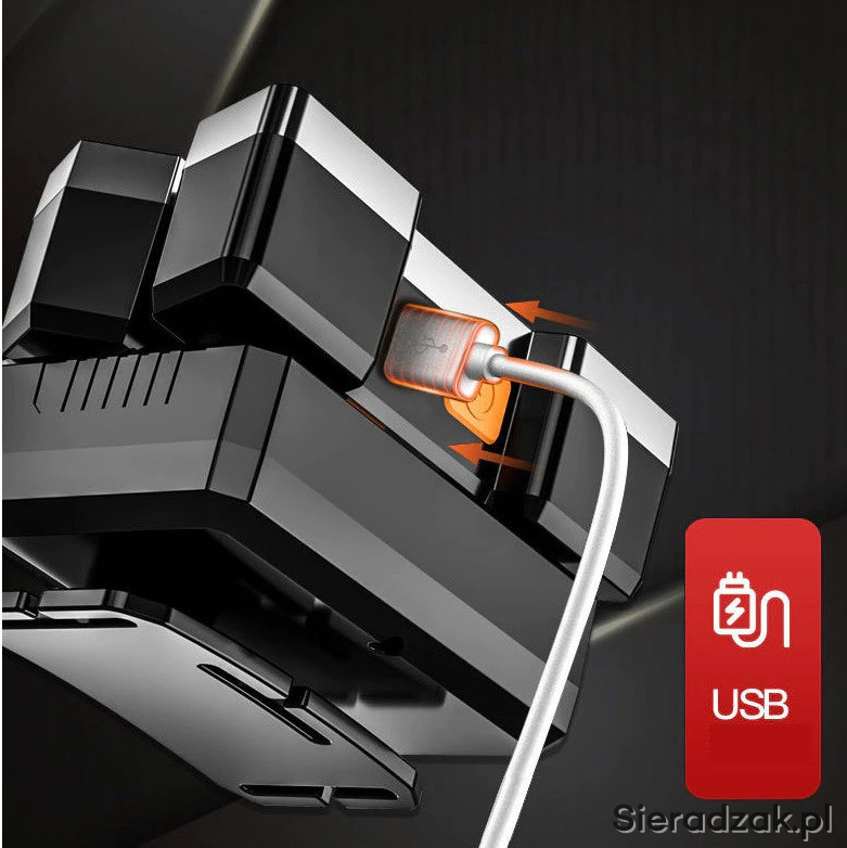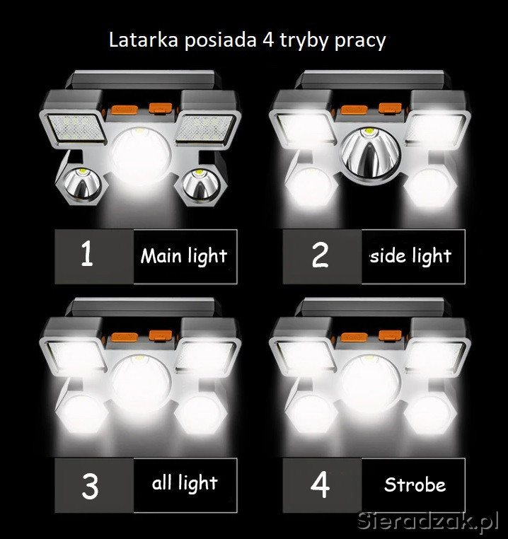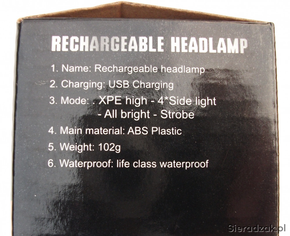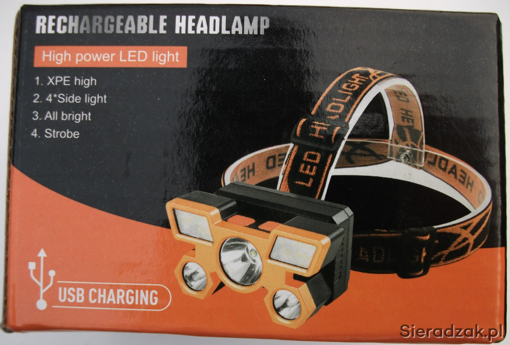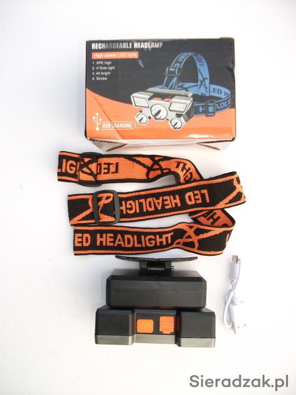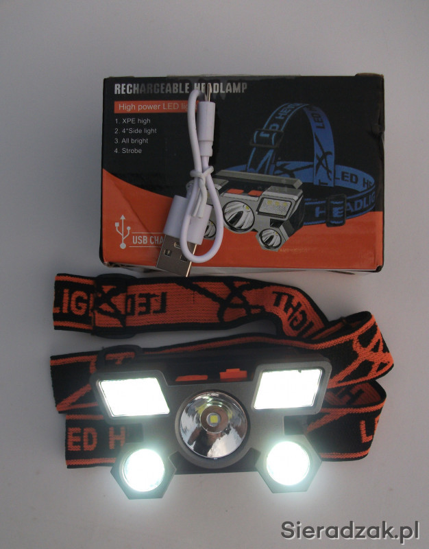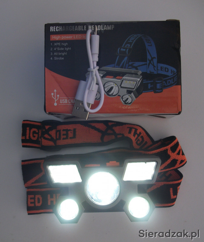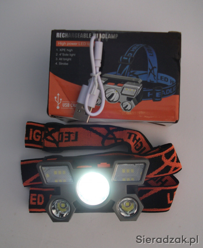 Posiadam w ofercie latarkę na głowę z wbudowaną baterią litową ładowaną przez gniazdo micro USB. Latarka ma regulację kąta padania światła.