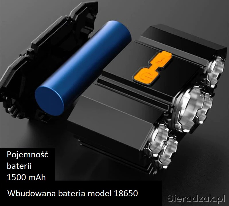 - Zasilanie: bateria litowa "18650"