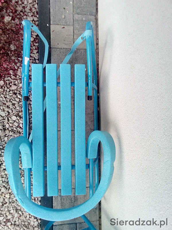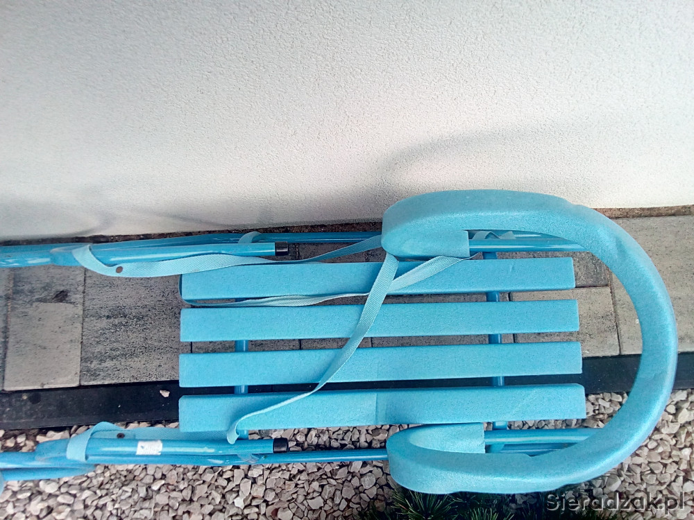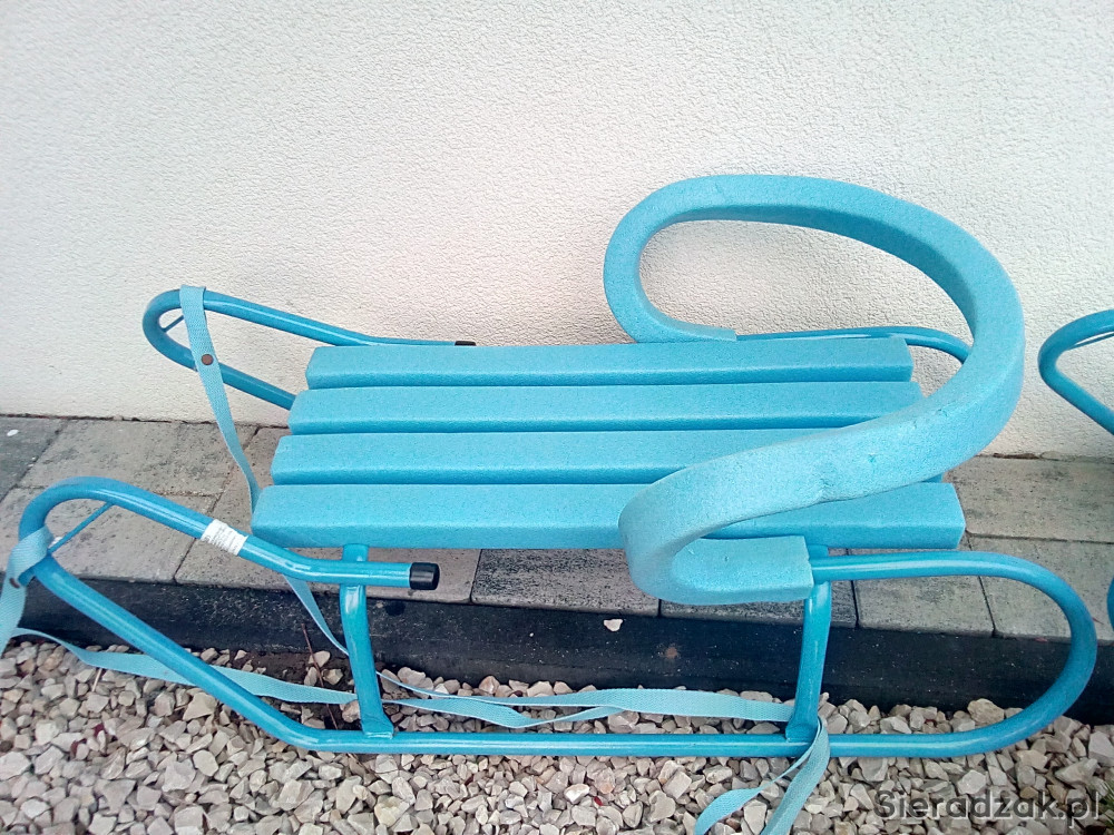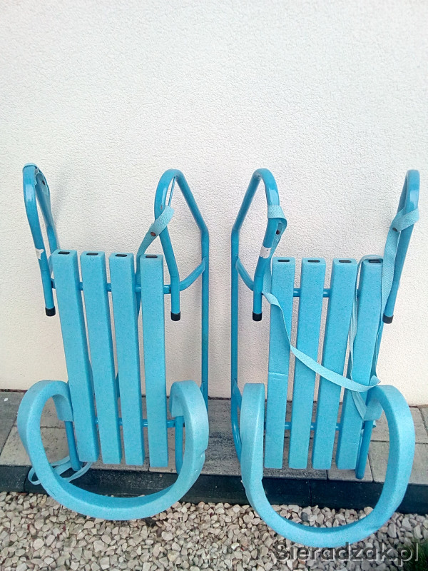 mam do zaoferowania dwie pary sanek dla dziecka widocznych na zdjęciach. Sanki są metalowe z oparciem, w całości w ładnym kolorze niebieskim.