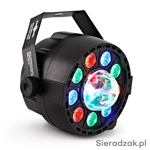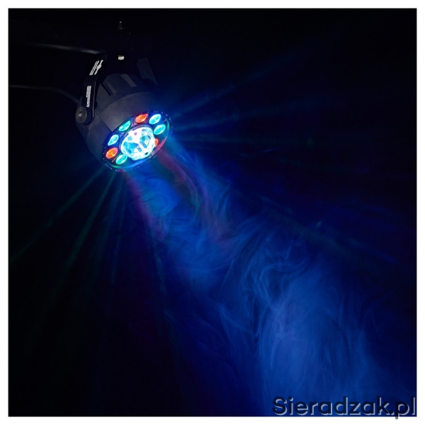Dostępne też inne reflektory par led, listwy bar, głowy ruchome, stroboskopy, wytwornice dymu i baniek, statywy oświetleniowe.