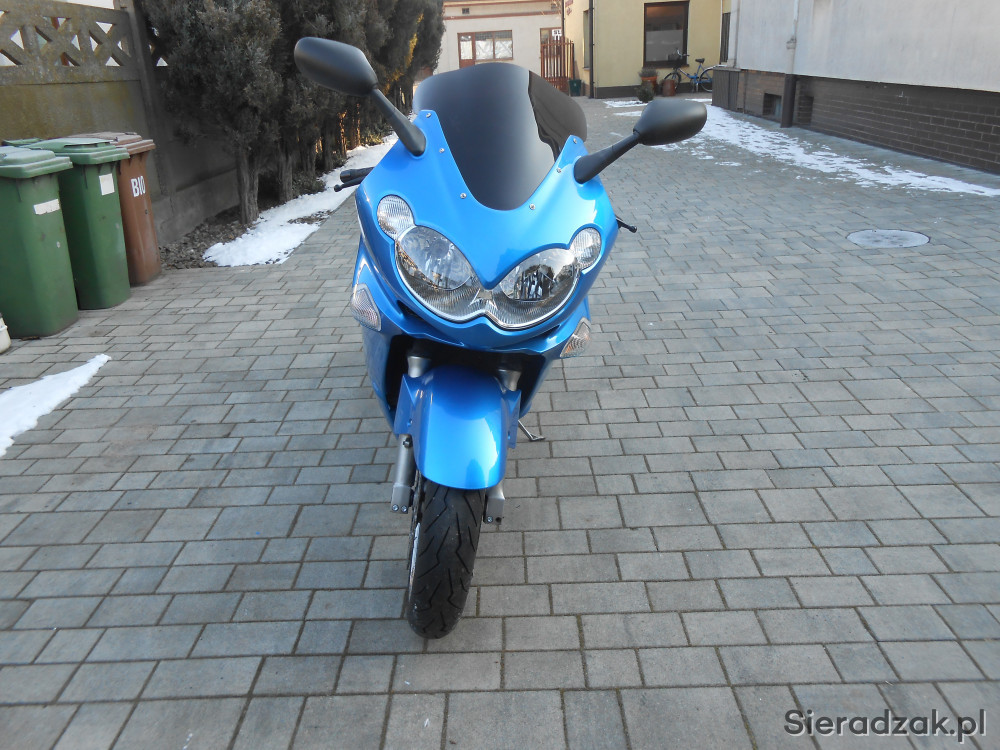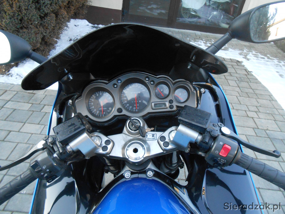 Rok produkcji 2002, przebieg 38 tys km,sprowadzony , zarejestrowamy i ubezpieczony, oczywiście na mnie. Motocykl bezwypadkowy, malowane były boczne owiewki ponieważ niemiecki fachowiec podmalował rysy speyem, owiewki nie klejone, można zdemontować i sprawdzić. Nowa opona przednia- przejechane około 800 km, tylna stan badzo dobry, po wymianie oleju, filta oleju i powietrza, czyszczeniu i synchronizacji gaźników, nowy akumulator na gwarancji, nowe świece irydy. Dwie kanapy, jedna oryginalna w idealnym stanie, druga przerobiona, dwie szybki, jasna i ciemna. Nie wymaga nakładów finansowych, książka serwisowa. Motocykl zarejestrowany i ubezpieczony.