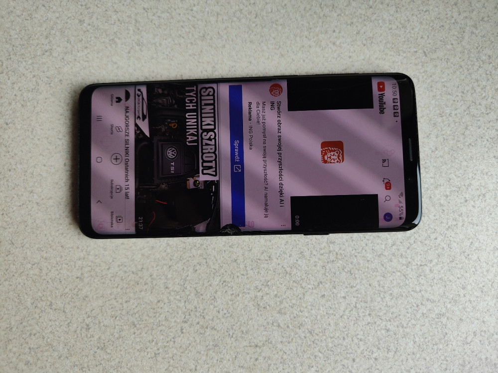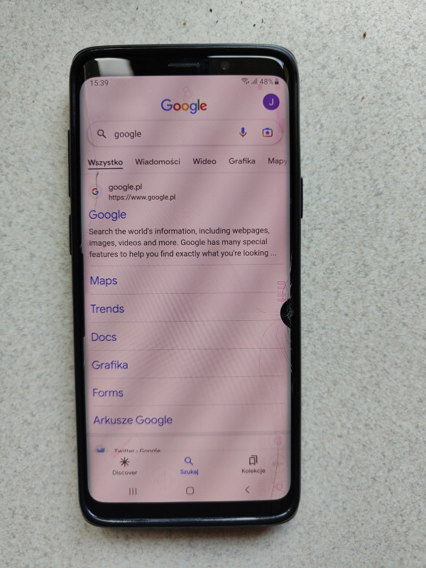 Uszkodzona szybka wyświetlacza z przodu.Nie wpływa to oprócz waloru wizualnego na działanie telefonu.Dziala jak od nowości.W kpl oryginalny pokrowiec Samsunga,pudełko z przejściówkami,ładowarka oraz szkło na szybkę.380 zł .Najlepiej odbiór osobisty .Wysłac też mogę