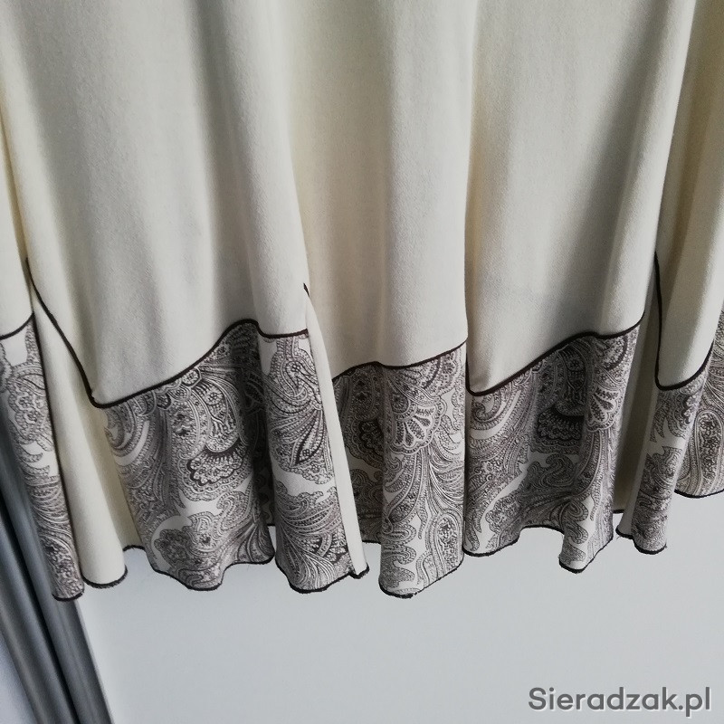 Bardzo ładna spódniczka w kolorze kremowym, zdobiona na dole w kolorze brązowym.