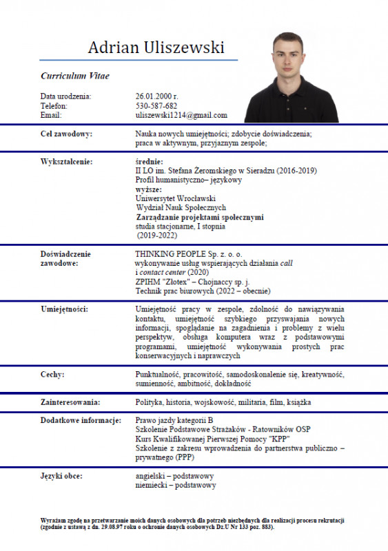 Najważniejsze informacje dotyczące mojego doświadczenia i kompetencji zawarłem w załączonym CV, jednak chciałbym zaznaczyć, że oferta pracy nie musi być związana z dotychczas wykonywanymi przeze mnie pracami.