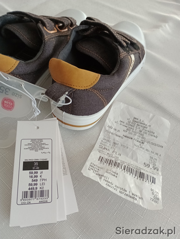 Rozmiar 35. Uniseks. Niestety okazały się za małe i nie mogę zwrócić bo rzekomo minął termin.