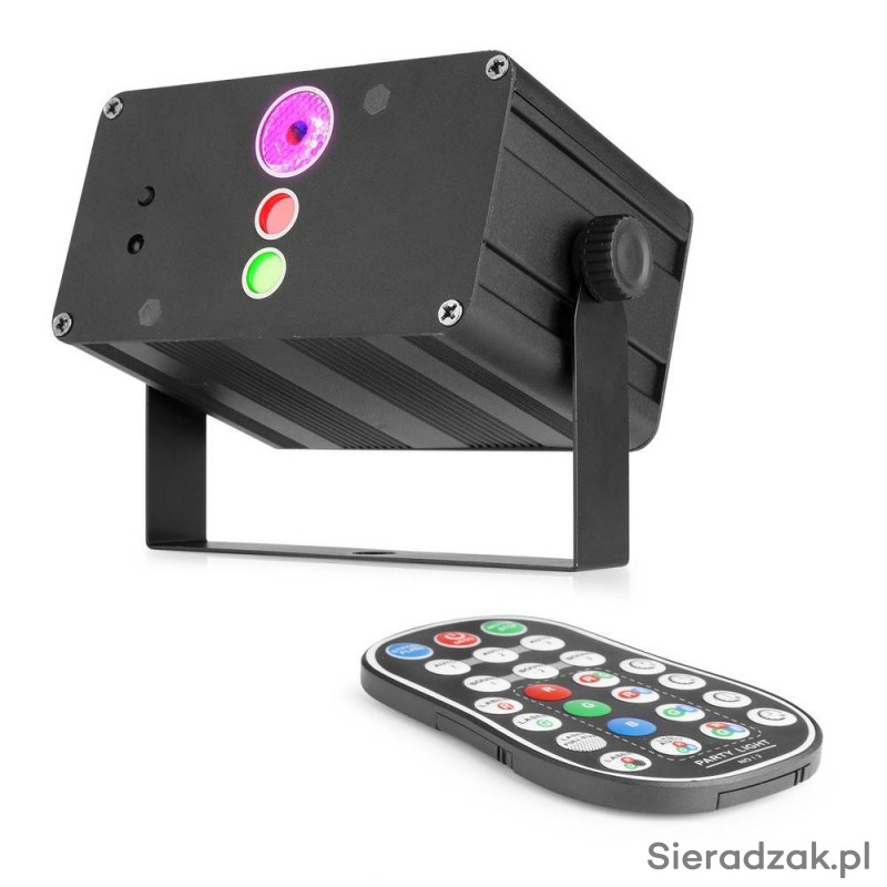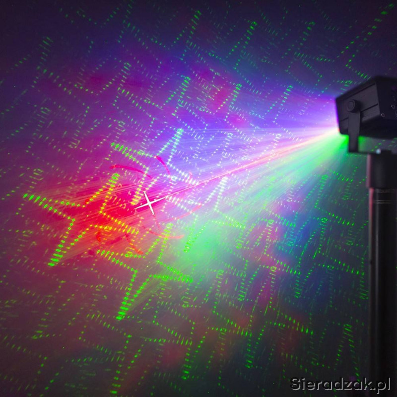 Laser red i grenn wyświetlający różne wzory i mix kolor RGB. Dzięki temu posiada duże możliwości pracy w każdych warunkach. Każdy użytkownik będzie z pewnością zadowolony mając możliwość użycia wszystkich efektów na każdej imprezie.