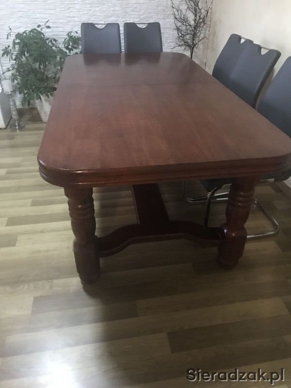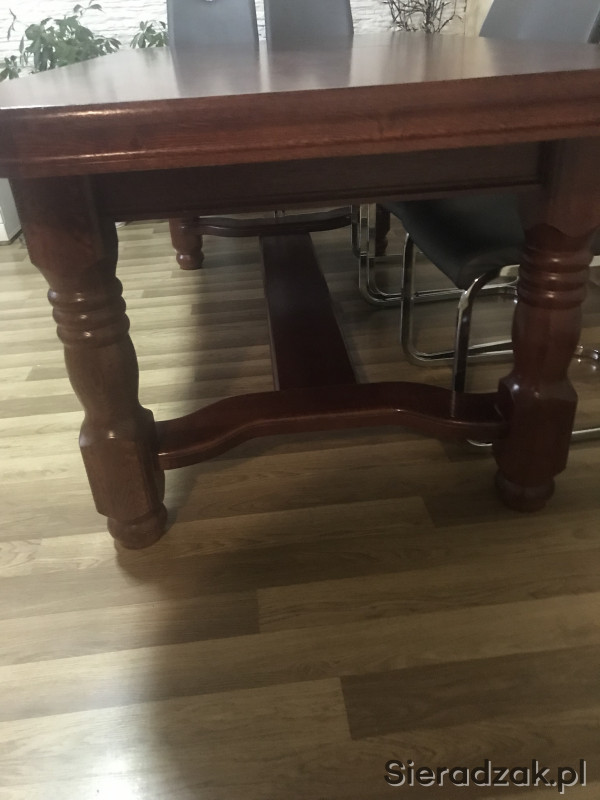 Sprzedam masywny ,drewniany stół.Na zdjęciu stół jest złożony 100cmx200cm.W stole są dwie zakładki po 50cm,po całkowitym rozłożeniu stół ma 300cm.Sprzedaję stół bez krzeseł.