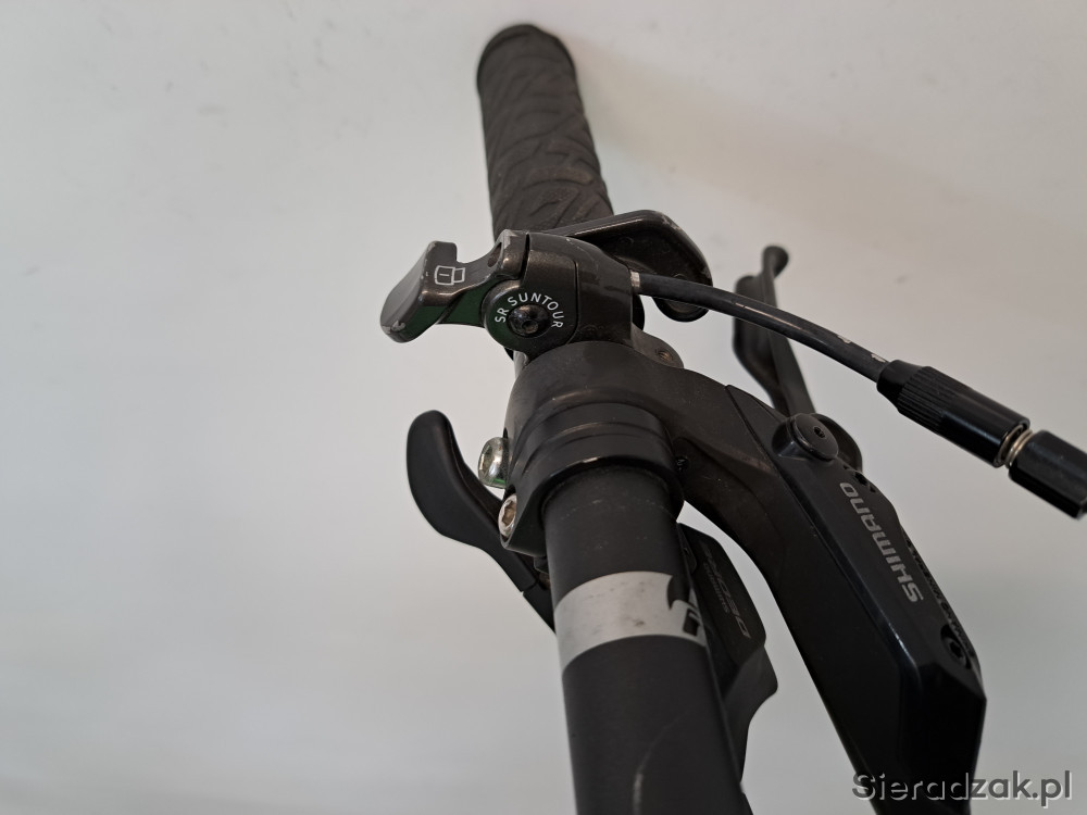 rama aluminium 18" 46cm,napęd 3x10,przerzutki shimano deore,manetki shimano deore,hamulce tarczowe hydrauliczne shimano,amortyzator sr suntour ghost epixon (regulacja manetką przy kierownicy),siodło selle italia,opony continental xking 2.20.stan bardzo dobry.