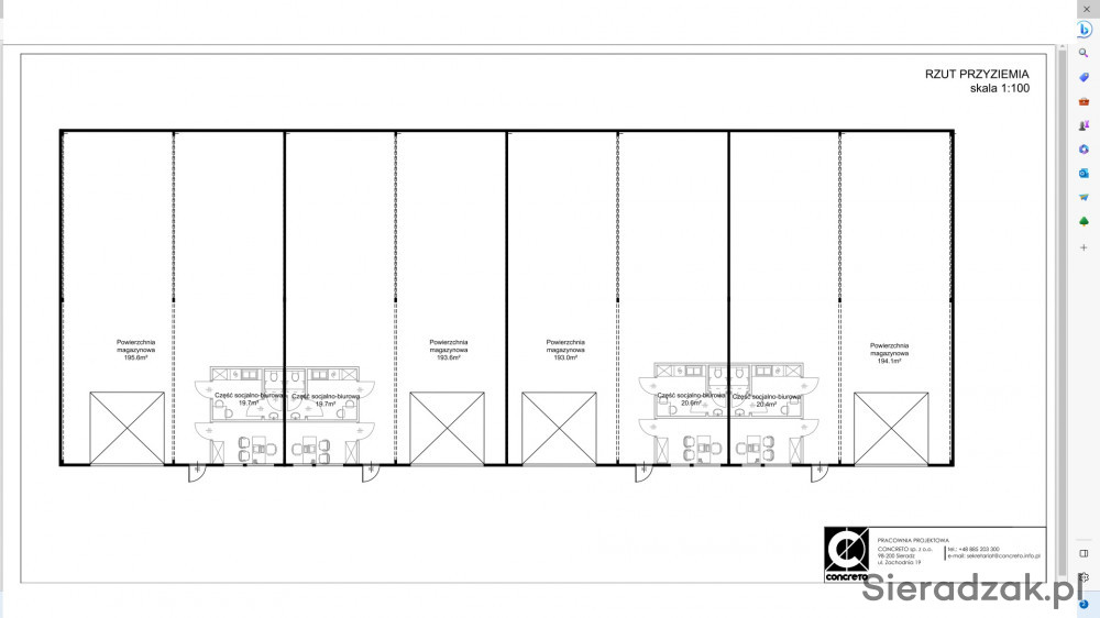 Do wynajęcia lokale usługowo - magazynowe 193m2 do 800 m2 położone przy ul. Starowarckiej w Sieradzu w nowo budowanym budynku.