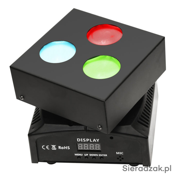 Kompaktowa głowica LED która doskonale nadaje się do profesjonalnego oświetlenia zarówno dużej sceny jak i mniejszych klubów i eventów. Trzy bardzo mocne diod LED RGBW z pełnym mieszaniem kolorów o mocy 10W każda, pozwala uzyskać doskonałe efekty świetlne, satysfakcjonujące nawet najbardziej wymagających inżynierów oświetlenia. Urządzenie oferuje gotowe programy pracy, co znacznie skraca konfigurację w dowolnym typie instalacji. Jest to poręczna i lekka głowica o wysokiej wartości strumienia świetlnego, która może być sterowana w standardzie DMX.