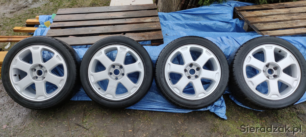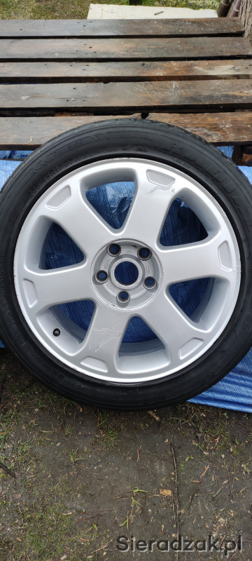 Sprzedam komplet oryginalnych alufelg audi AVUS 17 5x112 7,5J ET45 dopiero co zdjęte z audi a4 b6, świeżo wyczyszczone, stan jak na foto, czyli do dalszego użytku lub do renowacji, jedna felga trochę mocniej przetarta ja tak jeździłem i nic się nie działo czyli można też założyć nowe gumy wyważyć i śmigać, opony 235/45/17 jakiś bieżnik jest ale do zmiany bo dość stare, niestety brak dekielków ale można je zamówić z internetu nowe lub używane, alufelgi to oryginały starszych audi S3/S4, jak się nie sprzedadzą to sobie odnowie i wrzucę zimówki dlatego cena do lekkiej negocjacji, do obejrzenia 5 km od centrum Sieradza Zobacz mniej