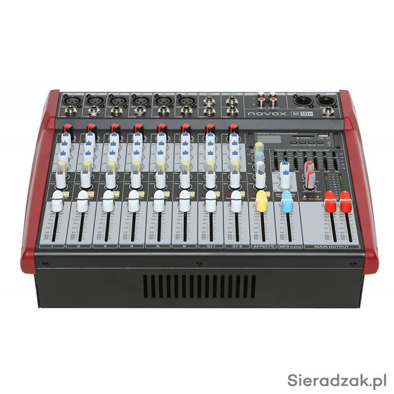 Mikser może służyć do kolumn aktywnych lub wzmacniacz+mikser do kolumn pasywnych jako nagłośnienie koncertowe, w klubie, w szkole, w domu, itp. Daje możliwość miksowania 6 sygnałów mikrofonowych / gitarowych lub sygnałów z odtwarzaczy CD, DVD, komputera, telefonu, keyboardu itp. Zapewnia profesjonalną jakość dźwięku.Wbudowany i odtwarzacz MP3 USB i kart SD.