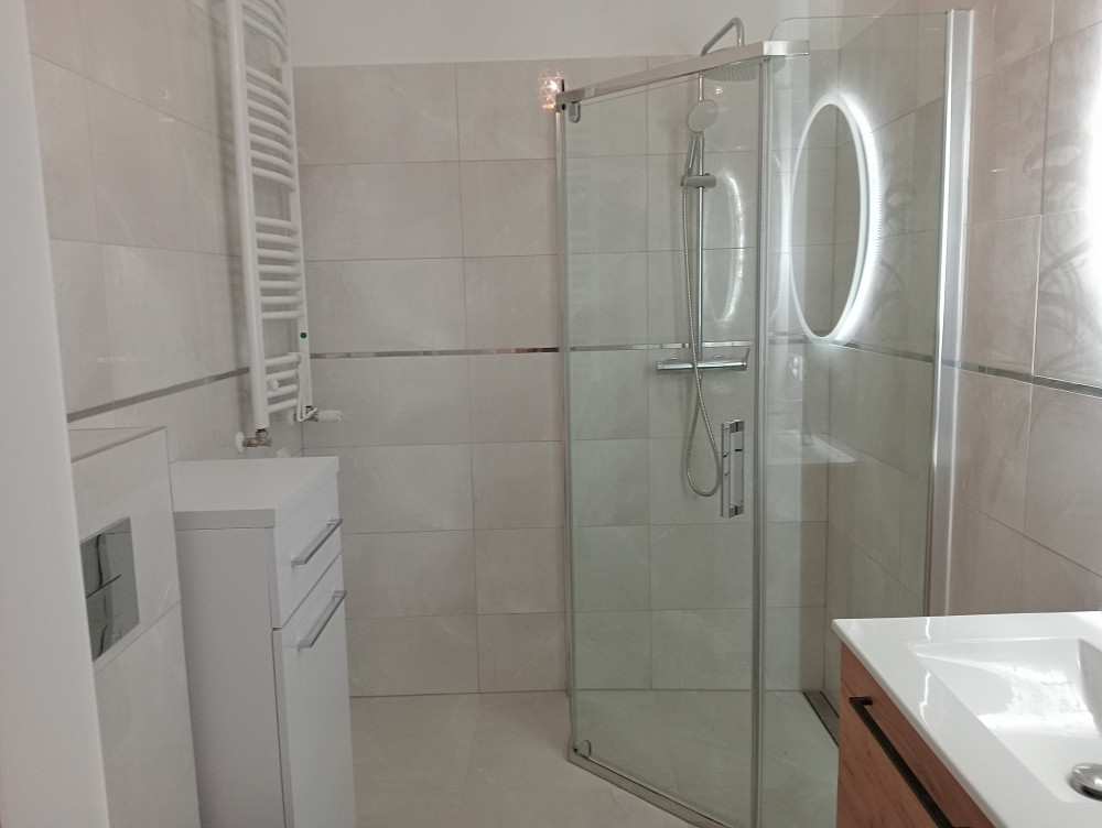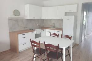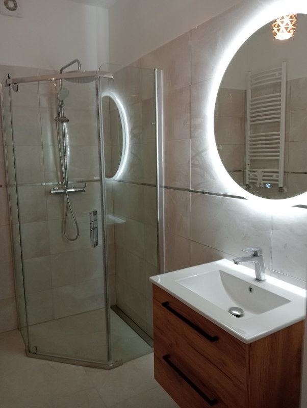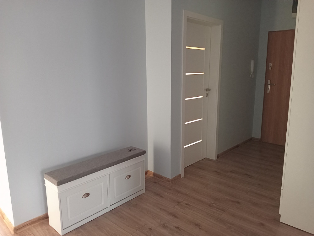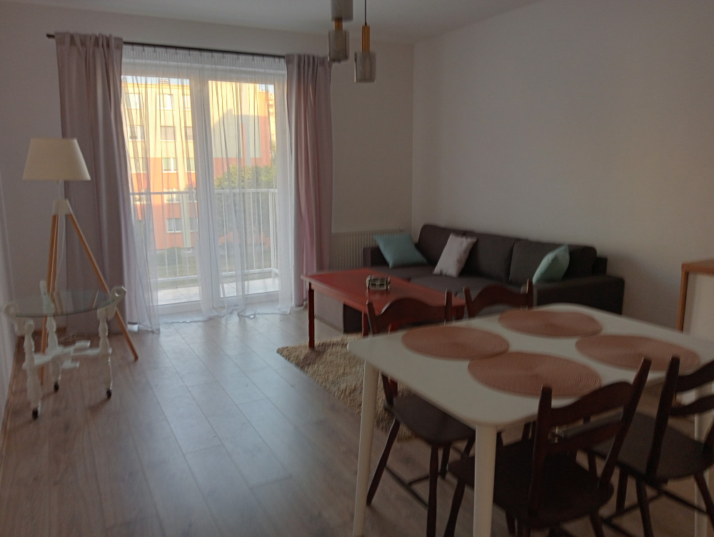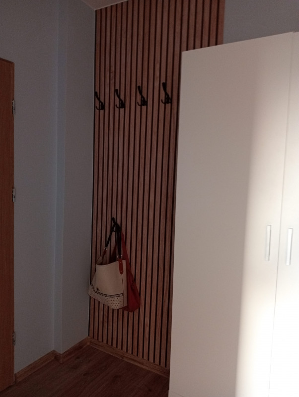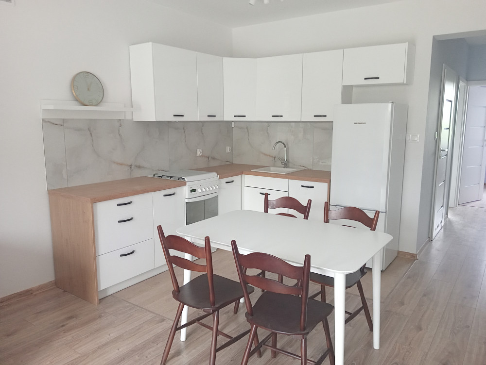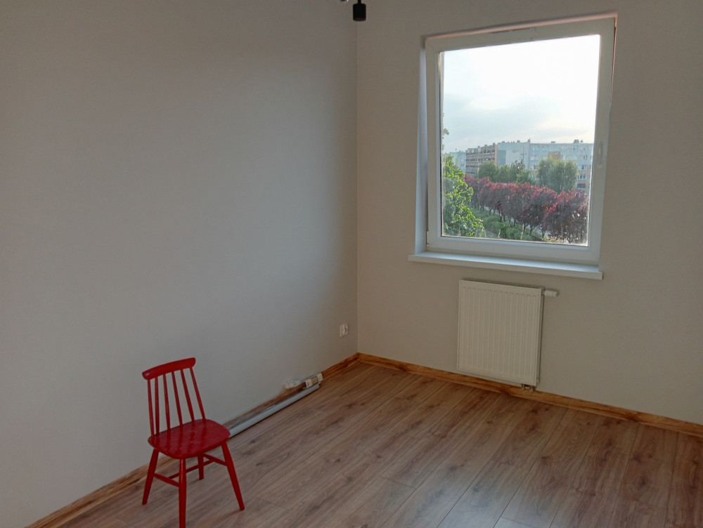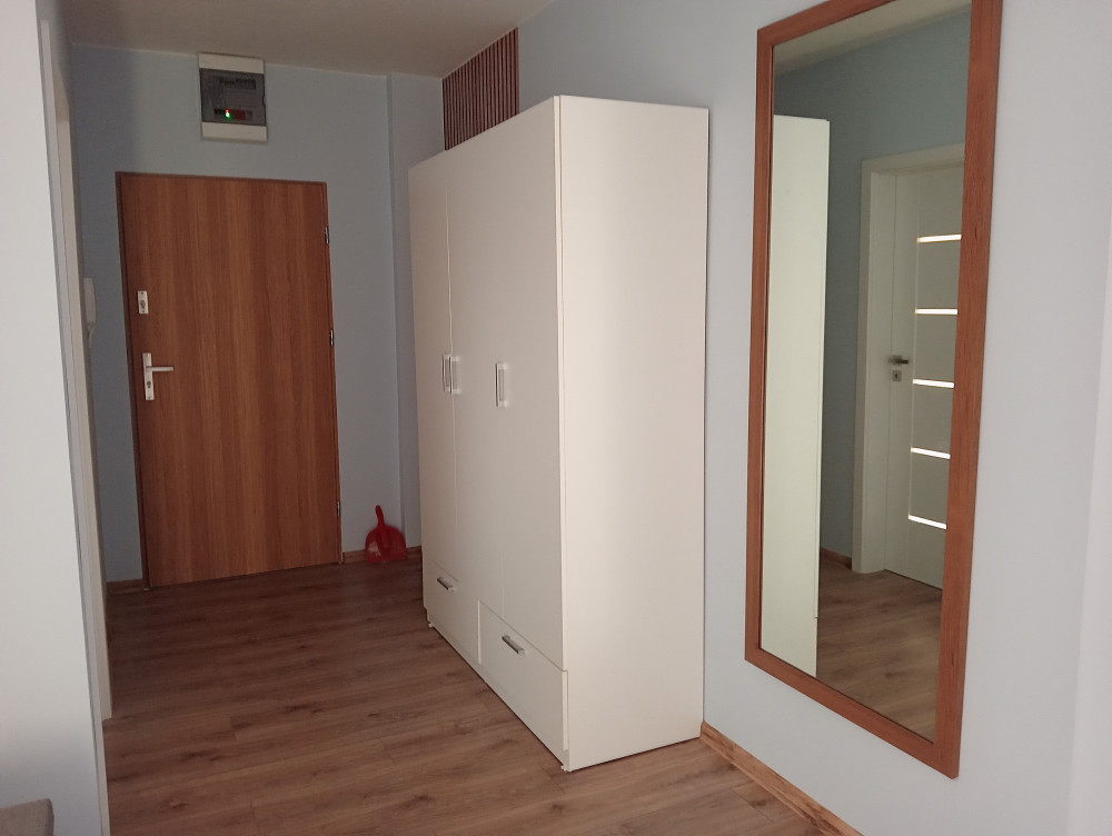 64m2, aneks kuchenny urządzony z salonem i wypoczynek, 3 pokoje, łazienka, korytarz, częściowo umeblowane.