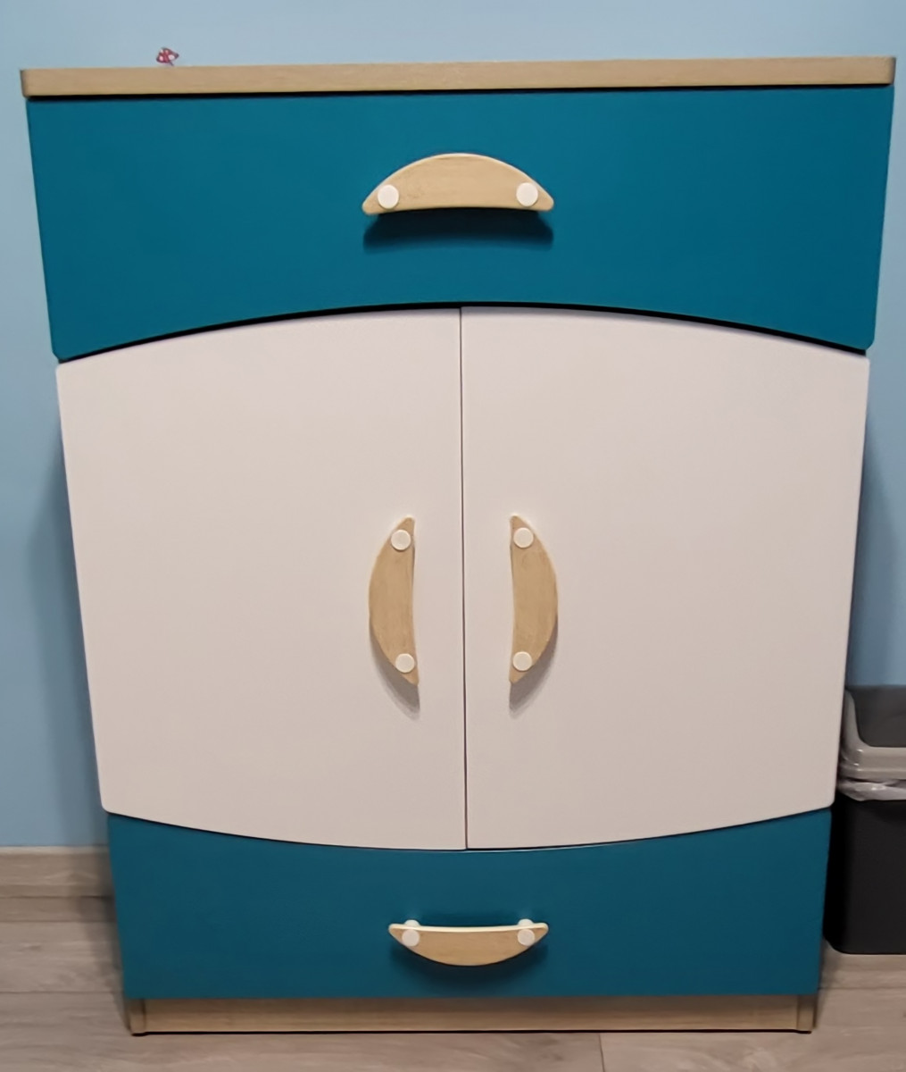 Sprzedam szafę i komode dla chlopca użytkowana tylko rok. . Wada widoczna na ostatnim zdjeciu powstała podczas montażu. Odbiór tylko osobisty możliwość negocjacjii ceny. Zapraszam do obejrzenia i kupna