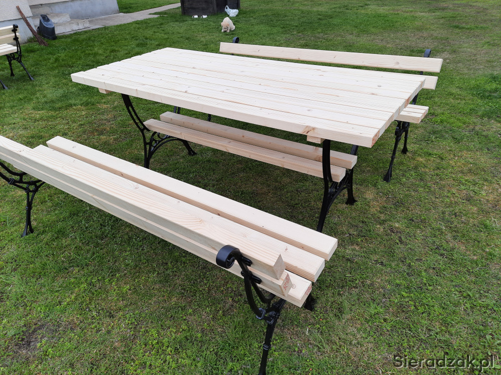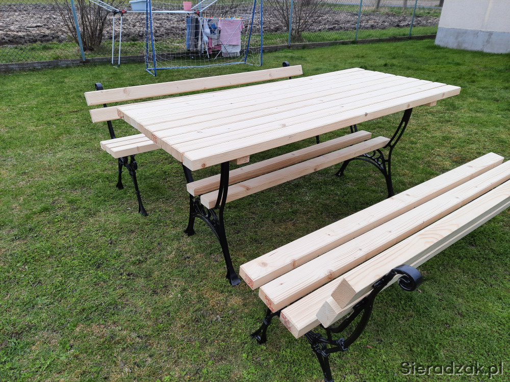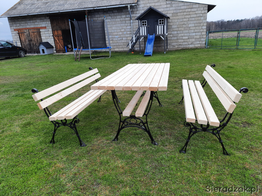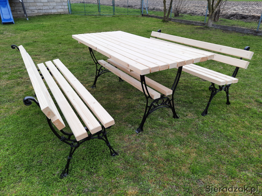 Sprzedam komplet mebli ogrodowych na nogach aluminiowych. Wymiary stołu to 180x80 a długość ławek to również 180 cm. Komplet wykonany bardzo solidnie z desek o grubości 4,5 cm. Za dopłatą istnieje możliwość pomalowania na dowolny kolor. Na zamówienie moge wykonać zestaw o innej długości. Odbiór osobisty. Pozdrawiam
