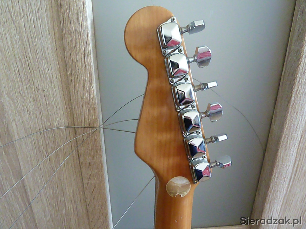 Kiedy Fender zdecydował się wyprodukować swoją gitarę Stratocaster w Indiach, głównie na rynek azjatycki, myląco zdecydowali się nazwać ją „Mustang”… mylące, ponieważ wyprodukowali już inny model o nazwie Mustang. Więc ta gitara to SUNN MUSTANG (Stratocast pod inną nazwą), wyprodukowana przez FMC (Fender Music Company) w Indiach we współpracy z SUNN. Późniejsze wersje tej gitary zebrały bardzo słabe recenzje (modele z lat 80-tych z koniem stającym dęba jako częścią logo główki) ......ale na szczęście jest to znacznie wczesna wersja i jest bardzo dobra. To przyjemna, solidna gitara z pięknym gryfem o wysokim połysku. Wyprofilowany korpus ma solidne wyrzeźbienie, które można uzyskać tylko ze starszymi instrumentami
