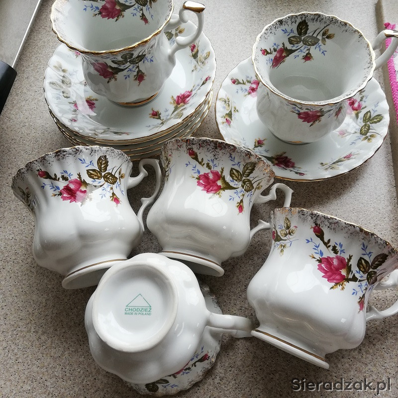 NOWE filiżanki do kawy firmy CHODZIEŻ IWONA z różą w unikatowym kształcie .