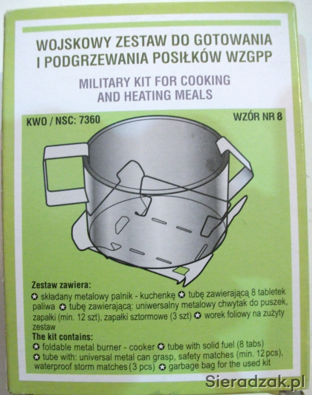 Przedmiotem oferty jest polski zestaw wojskowy - WZGPP lub niemiecki - ESBIT do podgrzewania i gotowania potraw w terenie.