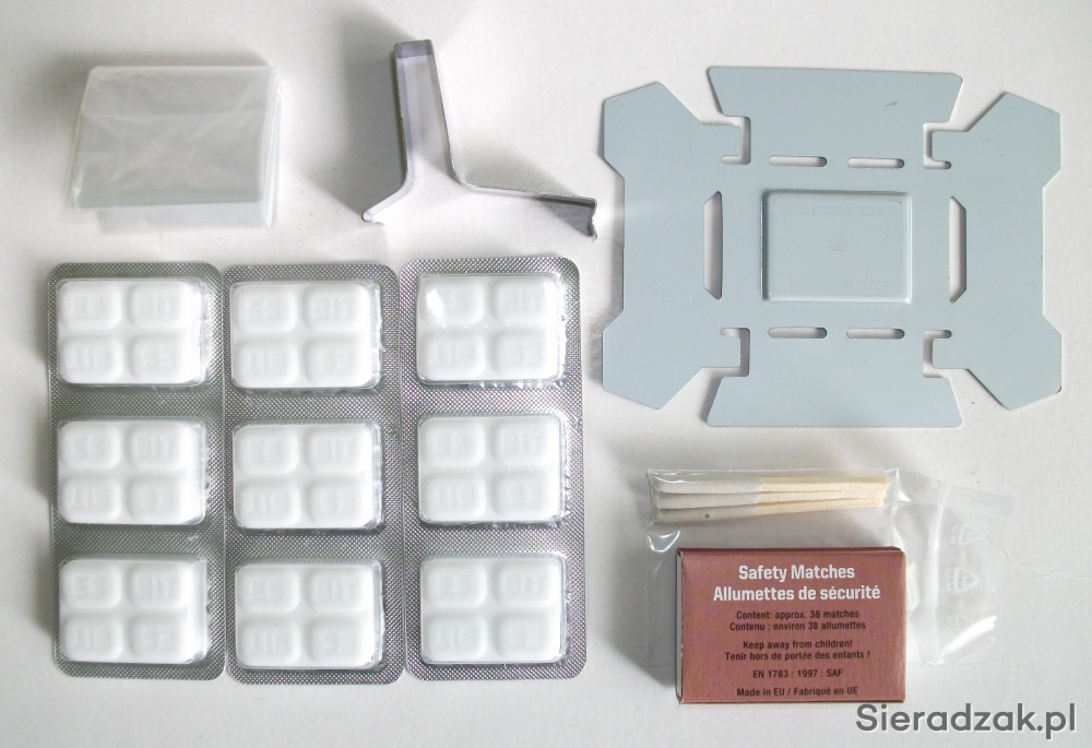- tuba zawierająca: uniwersalny metalowy chwytak puszek, zapałki (min. 12szt.), zapałki sztormowe (3szt.)