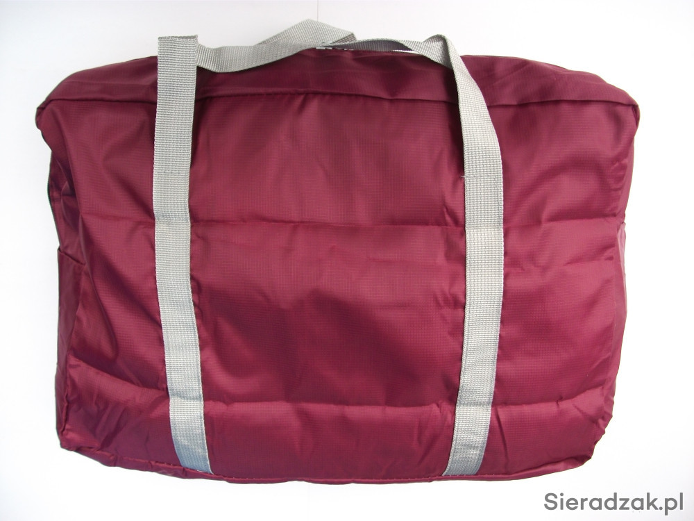 Sprzedam nową podręczną torbę o dużej pojemności. Zamykana jest na obustronny suwak. Na zewnątrz znajduje się praktyczna przednia kieszeń na różne drobiazgi. Jest ona odzielnie wszyta (doszyta) pod paski nośne. Dzięki temu sprytnemu zabiegowi torbę można "nadziać" na wysuwaną rączkę walizki podróżnej. Torba po starannym złożeniu ma niewielki rozmiar i można ją zmieścić do kieszeni kurtki.