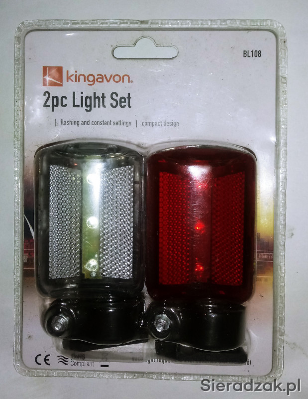 Lampki rowerowe na tył i przód, 3 ledy w każdej. Każda z lampek ma 7 funkcji: światło stałe oraz 6 funkcji migania.