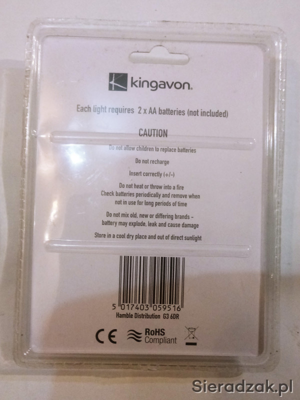 Zasilanie bateriami 2 x AA [LR6]. W zestawie komplet do montażu. Opakowanie- blister.
