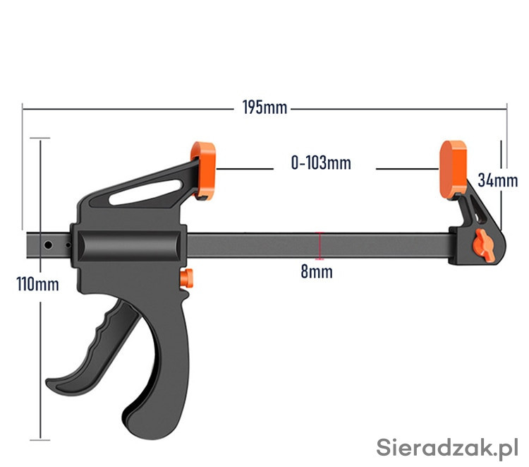 * Rozpiętość szczęk: 103 mm