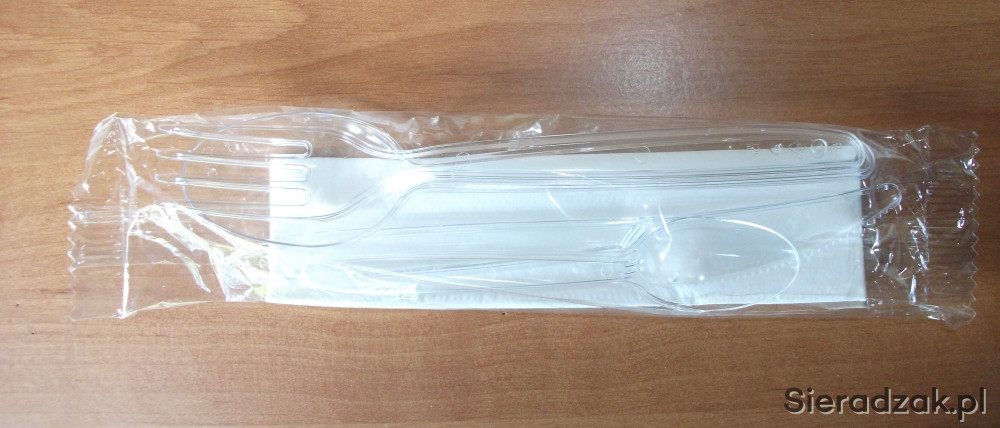 Komplet/Zestaw zawiera: 2 łyżki do zupy, łyżeczkę, widelec, nóż, słomkę do napojów, serwetkę i kubek.