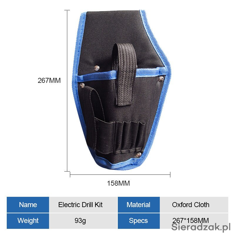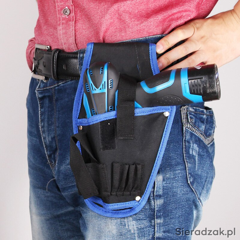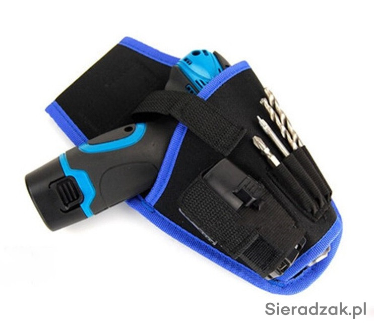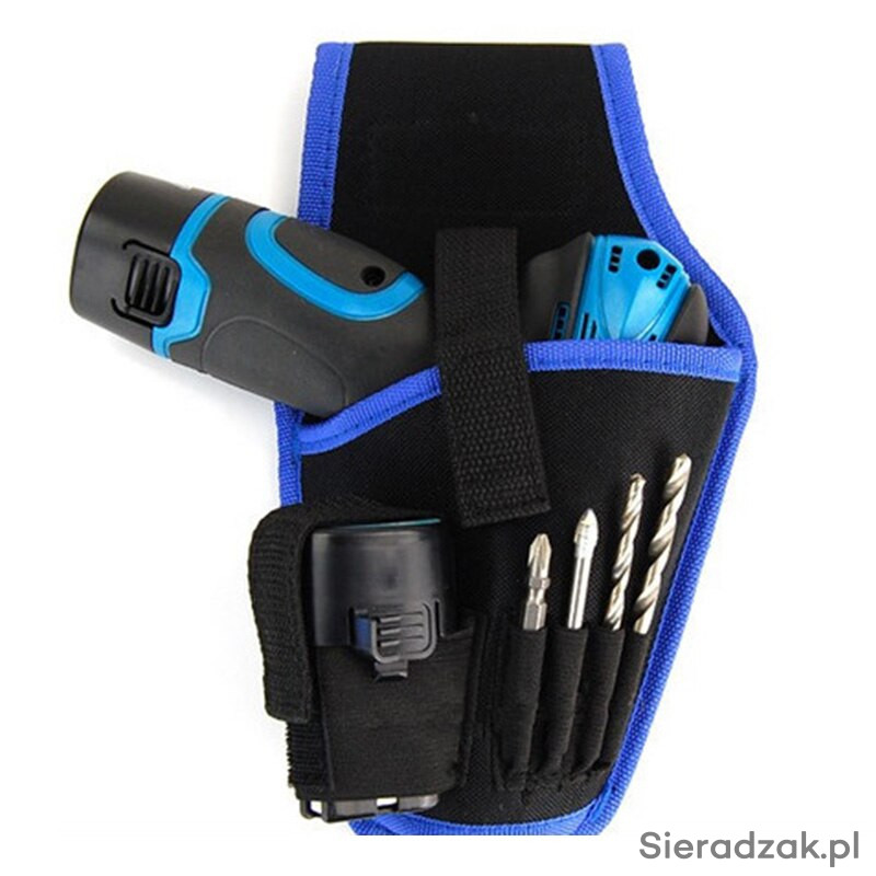 Zawiera kieszenie o różnych rozmiarach do przechowywania wiertarko-wkrętarki, wierteł, kluczy, śrubokrętów i wielu innych narzędzi.