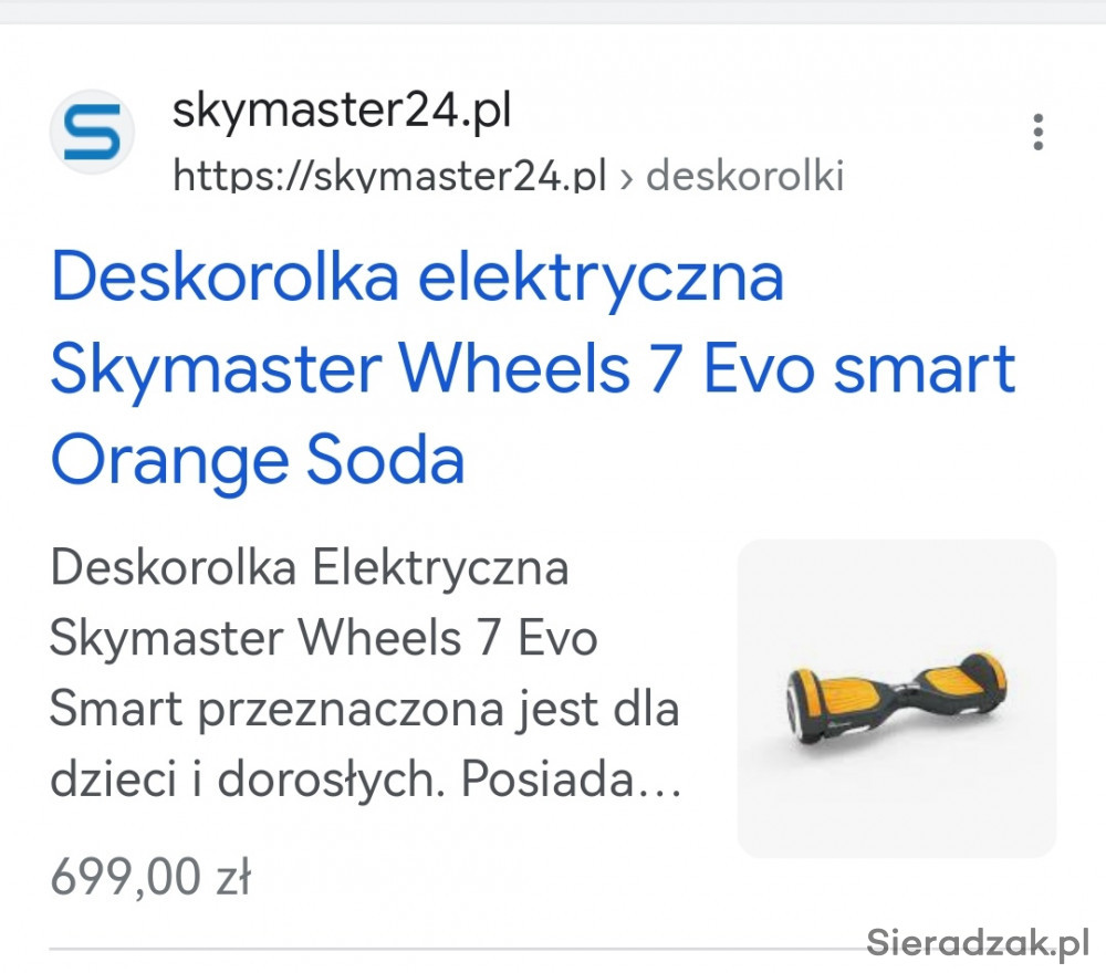 Sprzedam deskę elektryczną skymaster wheeles 7 EVO Smart używana, widać lekkie porysowania, typowe ślady od użytkowania, ale w pełni sprawna. Córka kupiła sobie na komunię, ale już jest starsza i nie chce jeździć, stoi...Zestaw to deskorolka i ładowarka.
