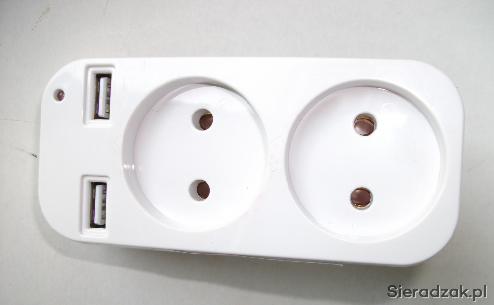 Sprzedam rozetkę na 2 gniazda 230V bez uziemienia i 2 gniazda USB do ładowania różnych urządzeń elektronicznych.