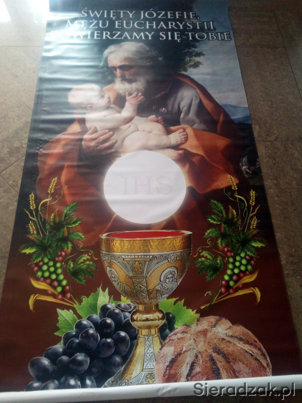 Sprzedam jak nowy baner na okoliczność Bożego ciała wymiar 100 szer na 197 wys. Piękne kolory motyw SW Józefa materiał odporny na deszcz czy . Zapraszam
