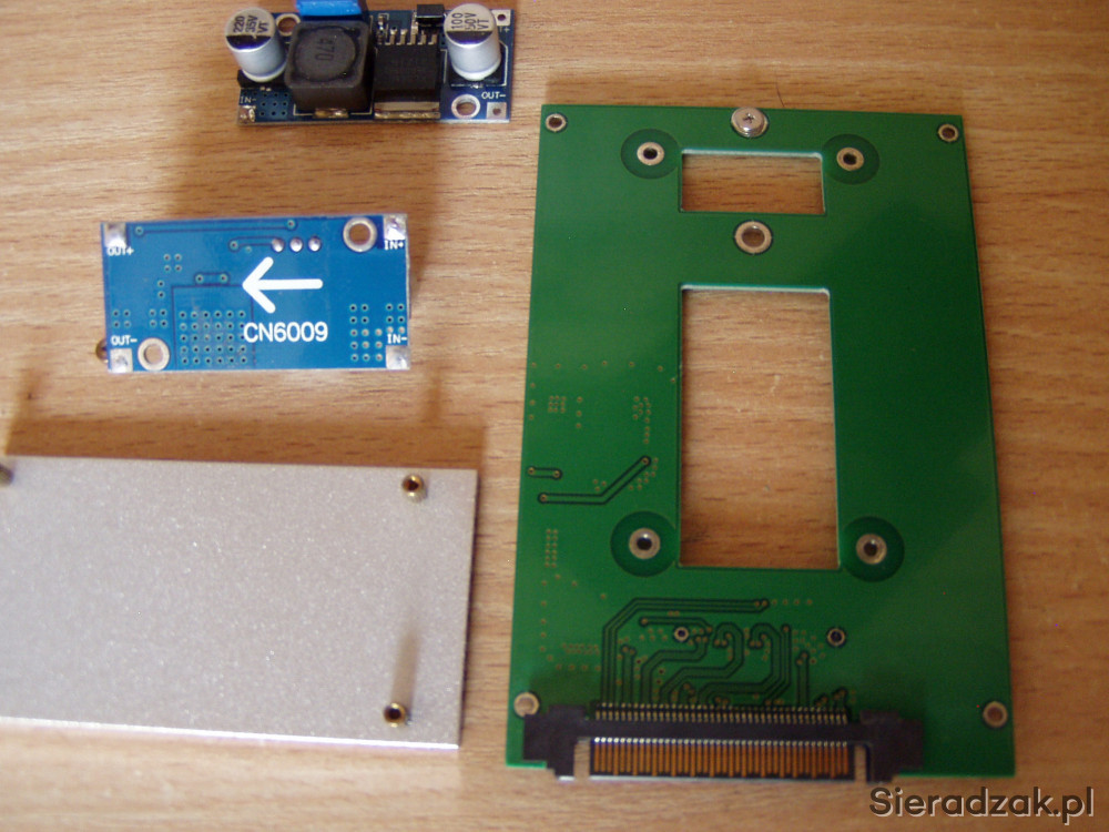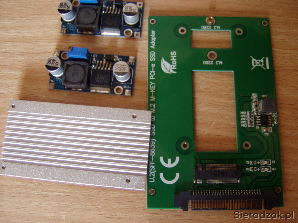 Płytki elektroniczne. Znalazły się w zakupie większej przesyłki. Adapter do dysku ssd M2 M-KEY PCI i dwie małe to przetwornice dc