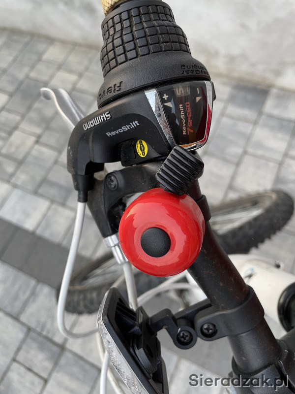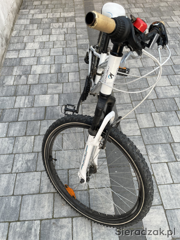 Koła 24", rama aluminiowa 12", przerzutki SHIMANO SIS z manetkami RevoShift, przedni amortyzator, opony w dobrym stanie.