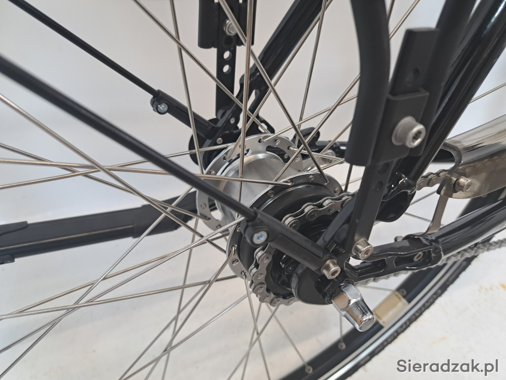 duża rama aluminium 26" 65cm,przerzutka shimano nexus 7-biegowa w tylnej piaście,amortyzator sr suntour,hamulce hydrauliczne magura hs 11,dynamo shimano nexus w przednim kole,oświetlenie led axa cl 35,wspornik kierownicy regulowany,siodełko selle royal viaggio,opony continental contact plus.