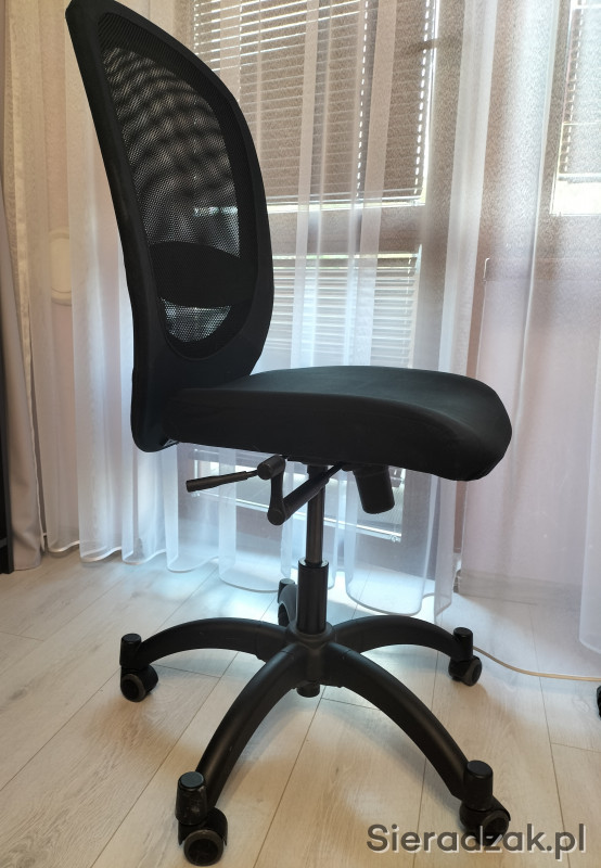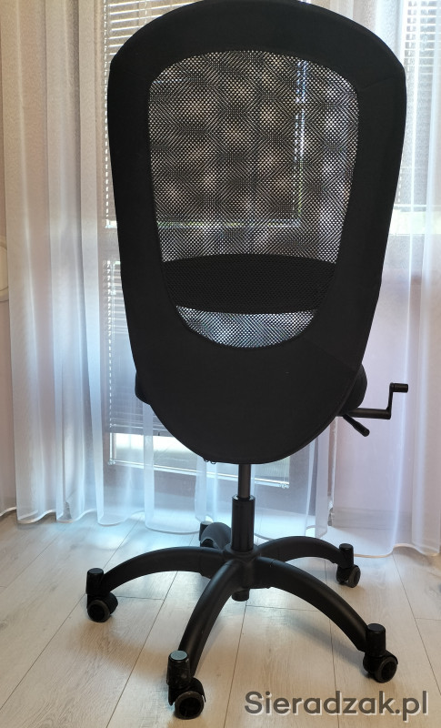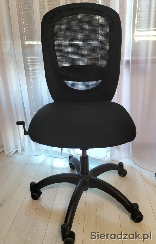 Do sprzedania krzesło obrotowe, Ikea Vilgot. Stan bardzo dobry. Regulacja wysokości siedziska. Oparcie z przewiewną siateczką. Pokrowiec można zdjąć i wyprać w pralce. Kółka do podłóg twardych, są blokowane gdy na krześle nikt nie siedzi, dzięki czemu nie odjeżdza podczas siadania i wstawania.