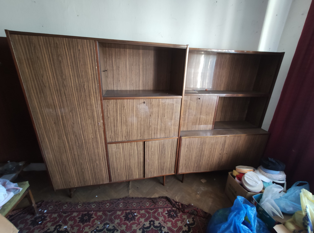 Oddam za darmo meblościankę PRL w komplecie przesuwne szyby i szklane półki (zdemontowane do transportu) odbiór osobisty w Sieradzu