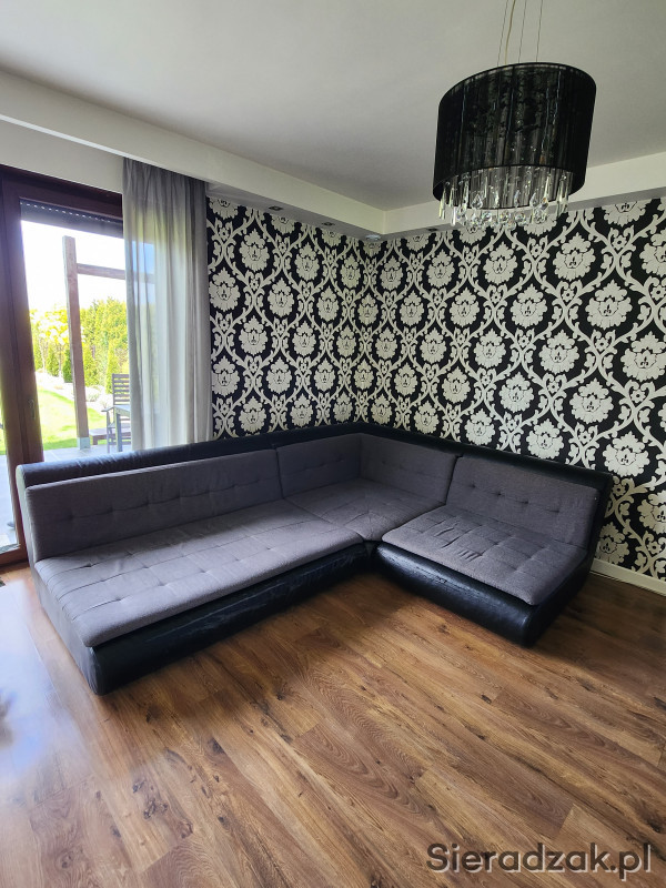 Nowoczesny narożnik modułowy. Bardzo wygodny i szeroki. Wymaga delikatnego odświeżenia. Widoczne ślady użytkowania. Po wizycie u tapicer będzie jak nowa :)