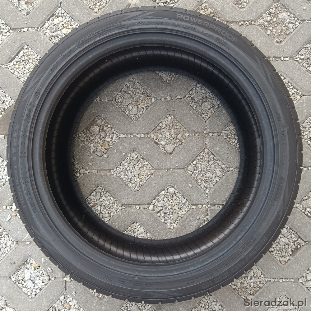 2x opony letnie Nokian PowerProof 225/40 R18 92Y, DOT 1221, bieżnik nowy. Opony fińskiego koncernu Nokian, bardzo dobre opony z klasy premium w przystępnej cenie.