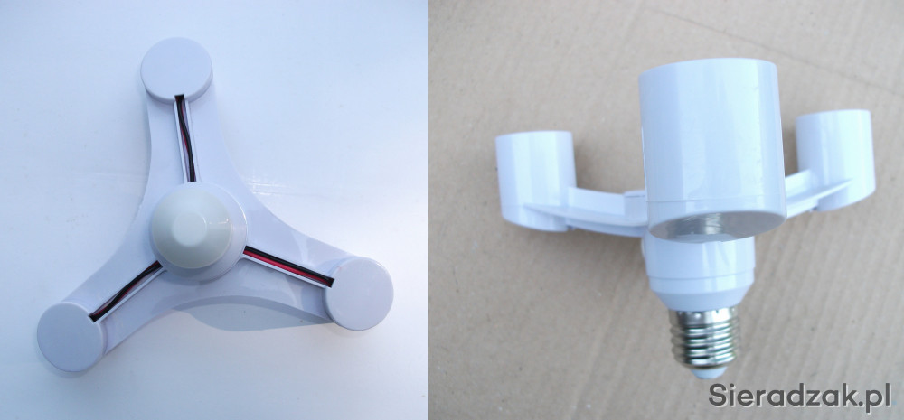 Jest to adapter rozgałęźnika rozdzielacz gniazda lampy z gwintem E27 na 3 żarówki z takim samym gwintem.