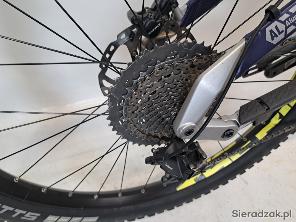 rama aluminium 6061 20" 51cm (XL),napęd 1x11,przerzutka sram gx,dzwignia zmiany biegów sram nx,damper rock shox monarch rt3,amortyzator sr suntour aion 35 z blokadą skoku,skok 120mm,hamulce hydrauliczne tarczowe tektro orion 4+2P 203/180,opony schwalbe johnny watts 2.8,siodło haibike xduro.stan techniczny bardzo dobry,wizualnie ślady normalnego użytkowania.