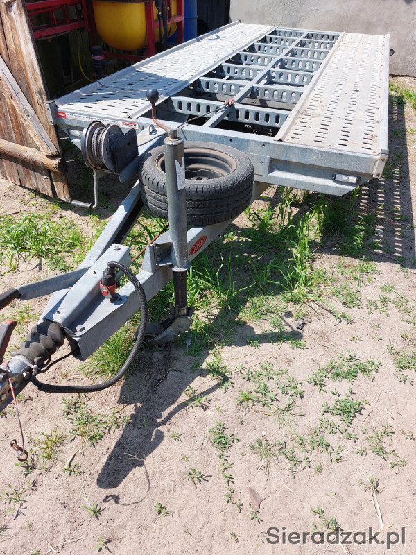 Sprzedam lawetę markowej firmy ta-no w bardzo dobrym stanie jak nowa z 2019 roku.Laweta w dowodzie ma 1600 dmc co pozwala ją ciągnąć mniejszy samochod.Wymiary 1.7x3.7 metra. Laweta zarejestrowana opłacona. Światła ledowe, wciągarka,trapy,koło zapasowe metalowe osłony tylnych lamp koło podporowe oraz amortyzatory na każde koło.. Więcej info tel.6.6.5.4.7.2.3.4.9