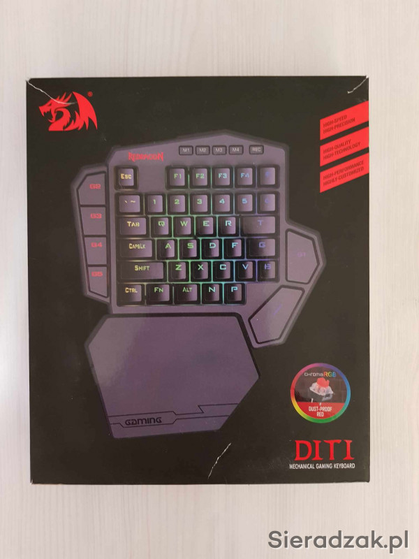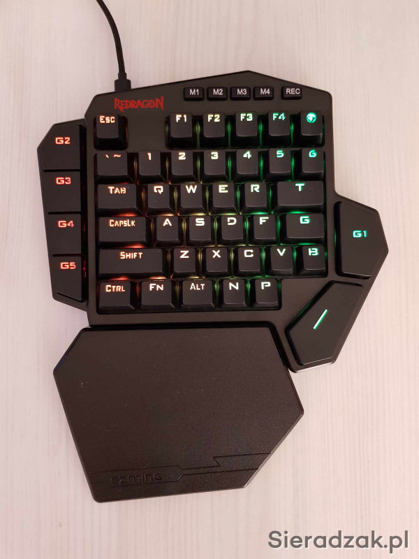 Redragon K585 DITI jednoręczna mechaniczna klawiatura do gier, przewodowa, profesjonalna klawiatura z 7 wbudowanymi klawiszami makro, odpinana podpórka pod nadgarstek, liniowy czerwony przełącznik
