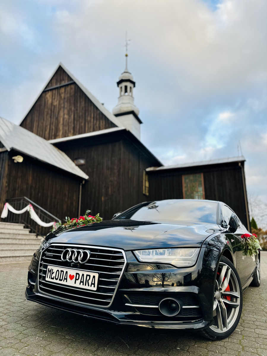Oferowany pojazd to Audi A7 o mocy 410KM, 20" stylowe felgi, Pakiet S-Line. Komfortowe, wygodne, w najbogatszej wersji wyposażenia. Wnętrze wykończone drewnem i alcantarą, oświetlenie zewnętrzne LED i wewnętrzne ambient Lightning LED, cztero strefową klimatyzację z oddzielną regulacją dla tylnych siedzeń, Szyberdach, przyciemniane szyby, skórzane podgrzewane i wentylowane siedzenia, rozbudowany system nagłośnienia audio, przestronne wnętrze i duży bagażnik gwarantuje komfort młodej parze.