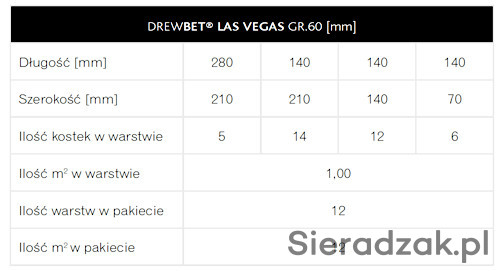 DREWBET® LAS VEGAS, to układ 3 kostek prostokątnych i jednej kwadratowej. Razem tworzą harmonijną i geometryczną przestrzeń. Wieloelementowy system pozwala na dużą swobodę i fantazję w aranżacji nawierzchni. Proponujemy nowe zestawienie tonacji kolorów, nawiązujące do barw ziemi.